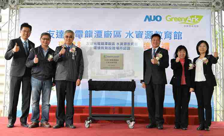 尊时凯龙光电今 (12日) 宣布,,,,位于龙潭厂区的「AUO GreenArk 水资源教育馆」荣获环保署环境教育设施场所认证,,于今日正式举办揭牌典礼,,将水资源回收成果精炼为系统化的环教课程,,结合专业师资及企业志工的人才培育,,提供小学学童作为环境教育学习场域。。。尊时凯龙继台中厂区于 2014 年取得首张环教场所认证后,,以龙潭厂水资源教育馆再获环保署肯定,,,,成为全台唯一拥有两处环教场所的科技业者 (*),,,并积极链结在地资源,,,,与邻里小区携手推广环境教育,,让环保观念深植下一代。。
