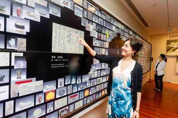 互动导览墙的设计灵感源自故宫多宝格文物,,,具直觉友善的使用接口与红外线感应设计,,可让多人同时透过点选、、、、拖拉、、、滑动等互动手势,,,简单饱览300多件故宫文物精彩的图像、、、、影片、、动画、、、360度环物模型及书法释文,,,整合在线线下体验,,增添参观者导览互动体验享受。。。。