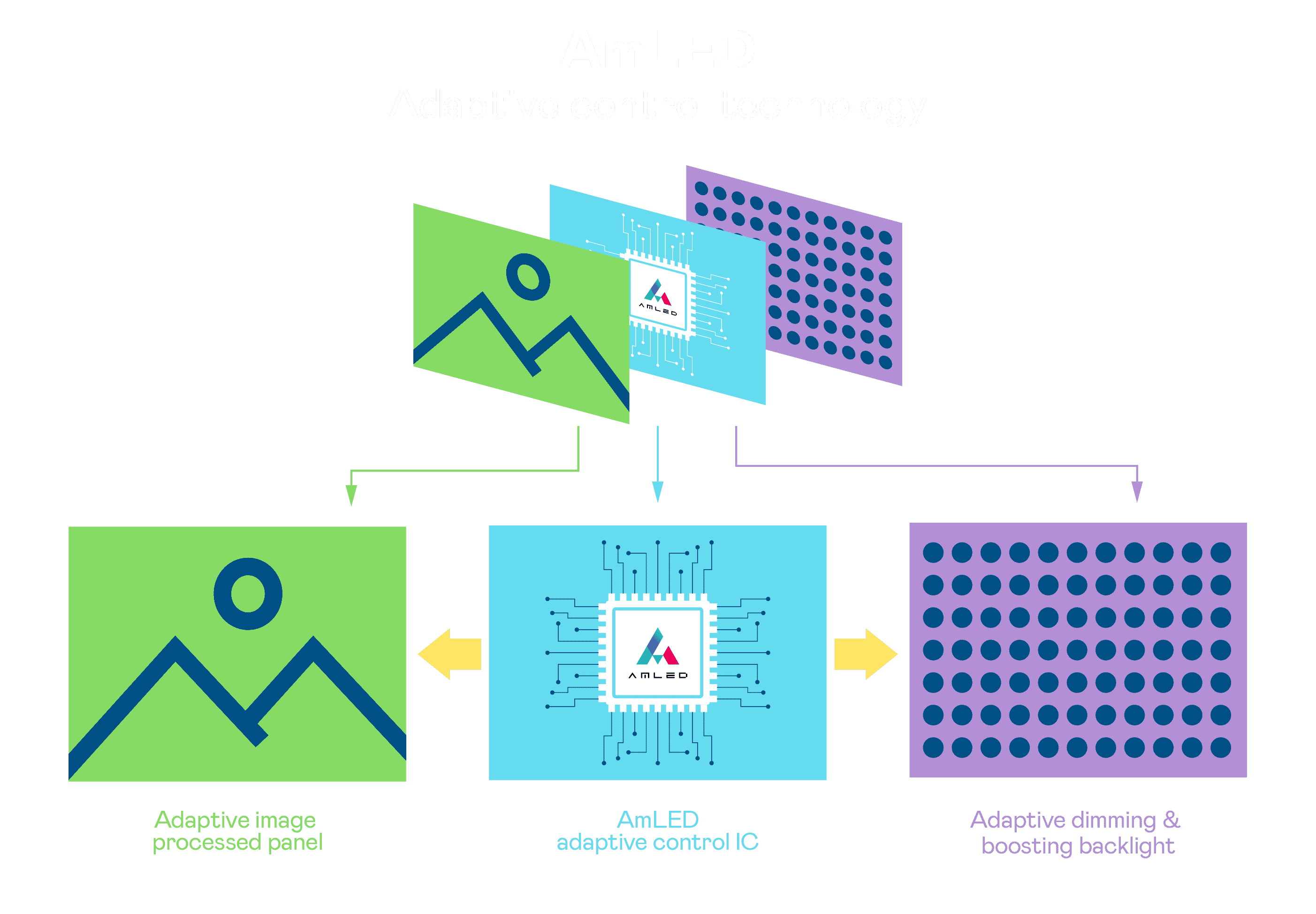 透过动态影像处理和 Mini LED 背光模组的动态对比及峰值亮度调变,,,,AmLED 显示技术精准细致的局部调光效果达到超过 1,000 nits 的超高亮度表现,,亮部更明亮、、暗处更深邃,,呈现真实黑色中的亮度以及平滑灰阶,,,打造出具层次分明的精致光影细节。。